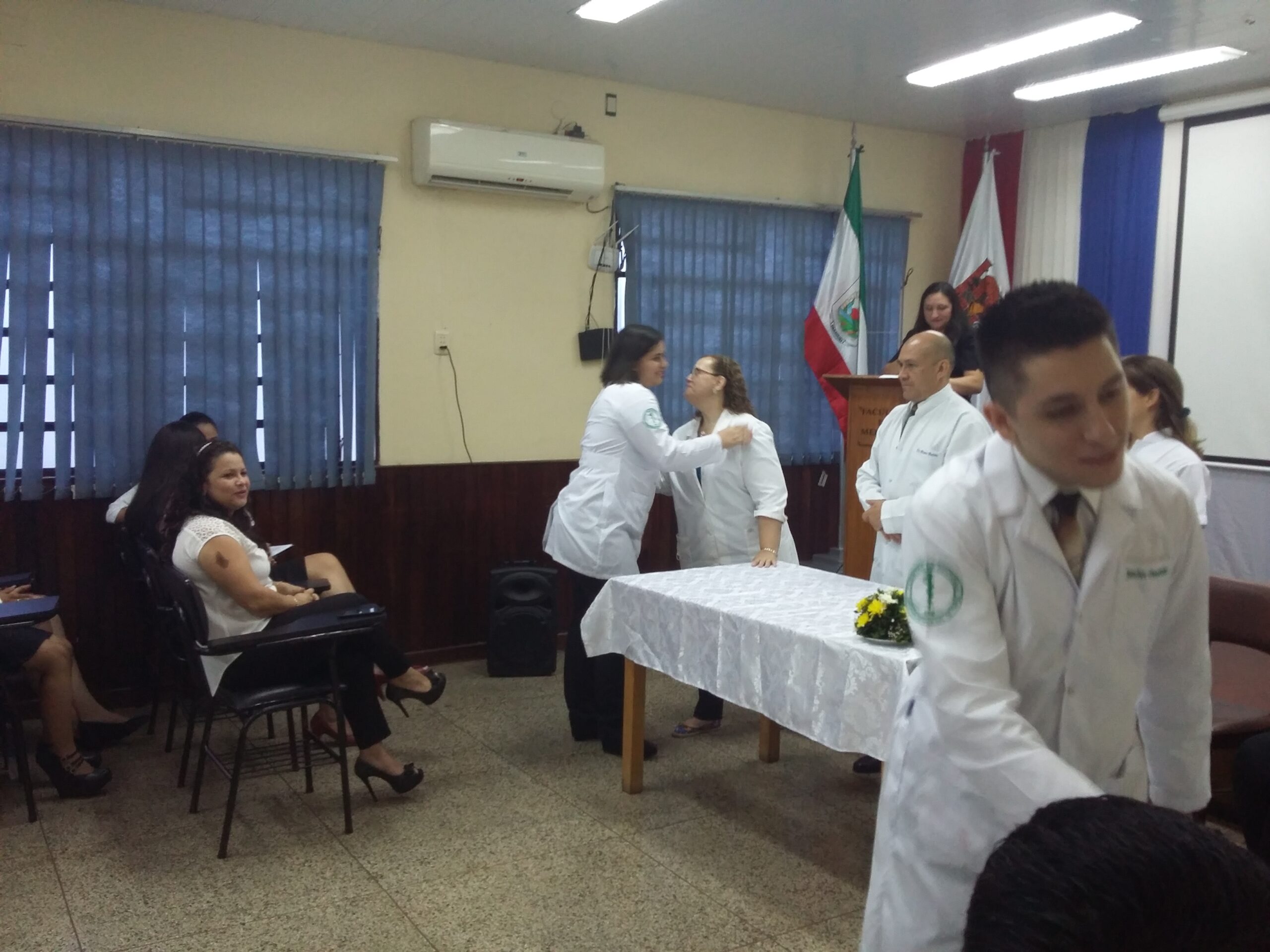 En el salón auditorio de la Facultad de Medicina UNI, a las 08:00, directivos, docentes y funcionarios de la institución, se reunieron para dar la bienvenida con el tradicional primer llamado de lista, a los cuarenta y ocho nuevos integrantes de esta casa de estudios.