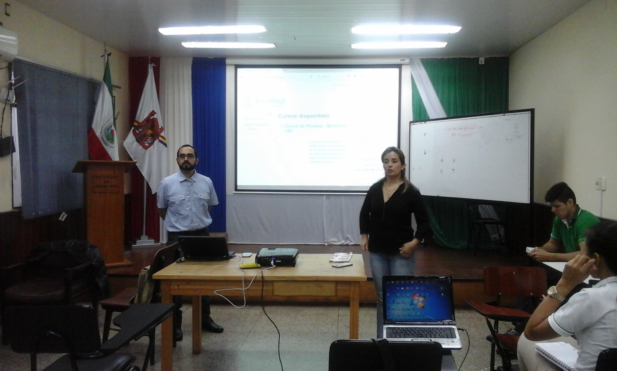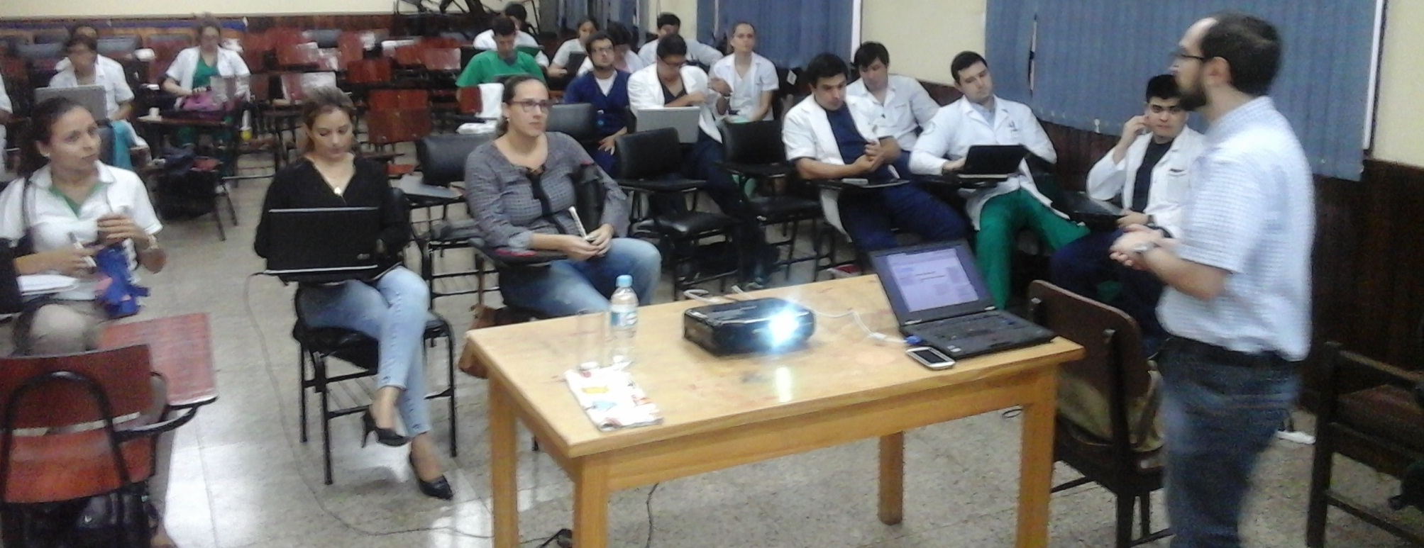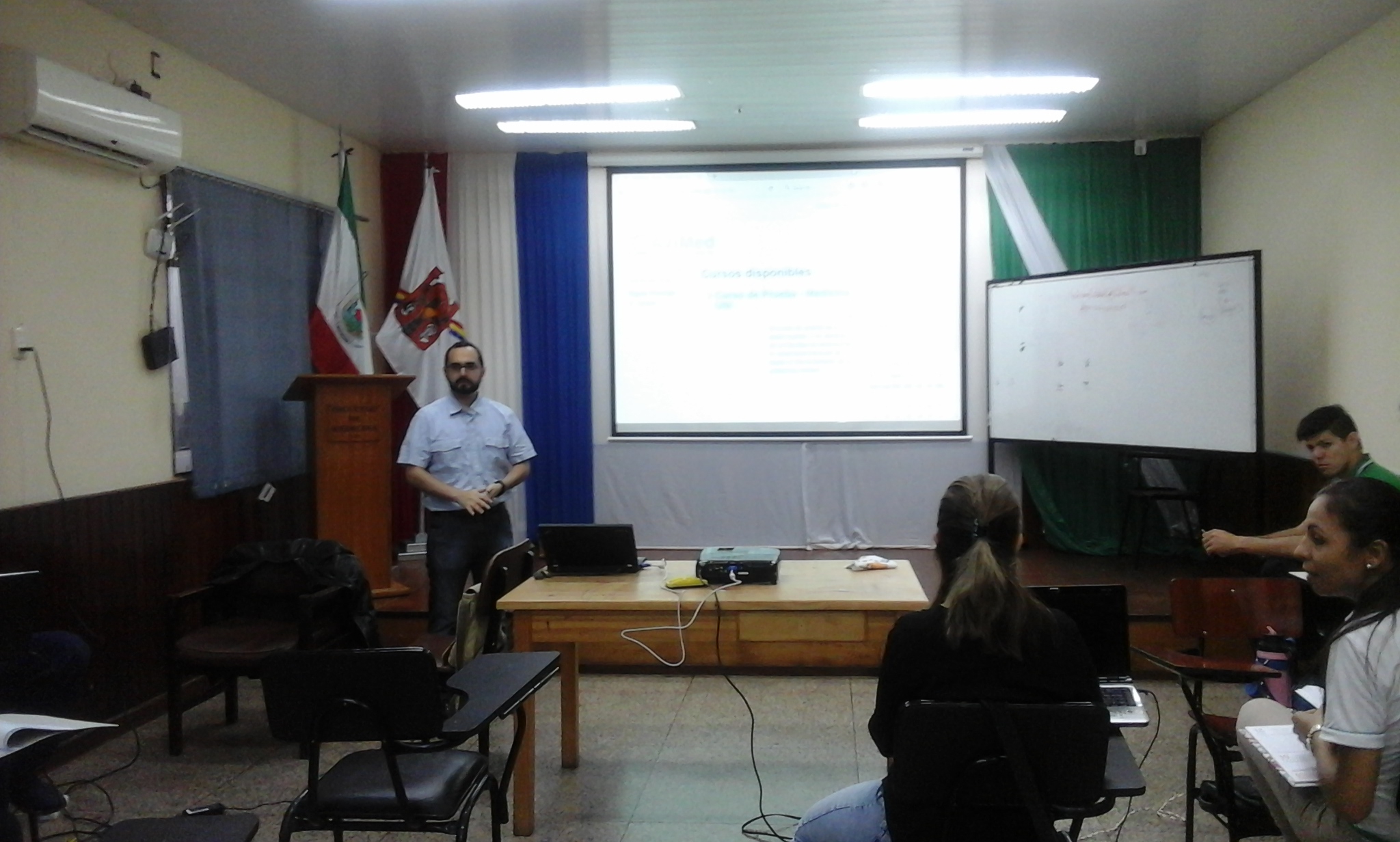 En el salón auditorio de la Facultad de Medicina UNI, a las 09:00, se llevó a cabo una capacitación dictada por el Web Master Marcos Codas, dirigida a estudiantes del sexto curso de la carrera, sobre la plataforma MOODLE, que se encuentra disponible en la página web de esta unidad académica.