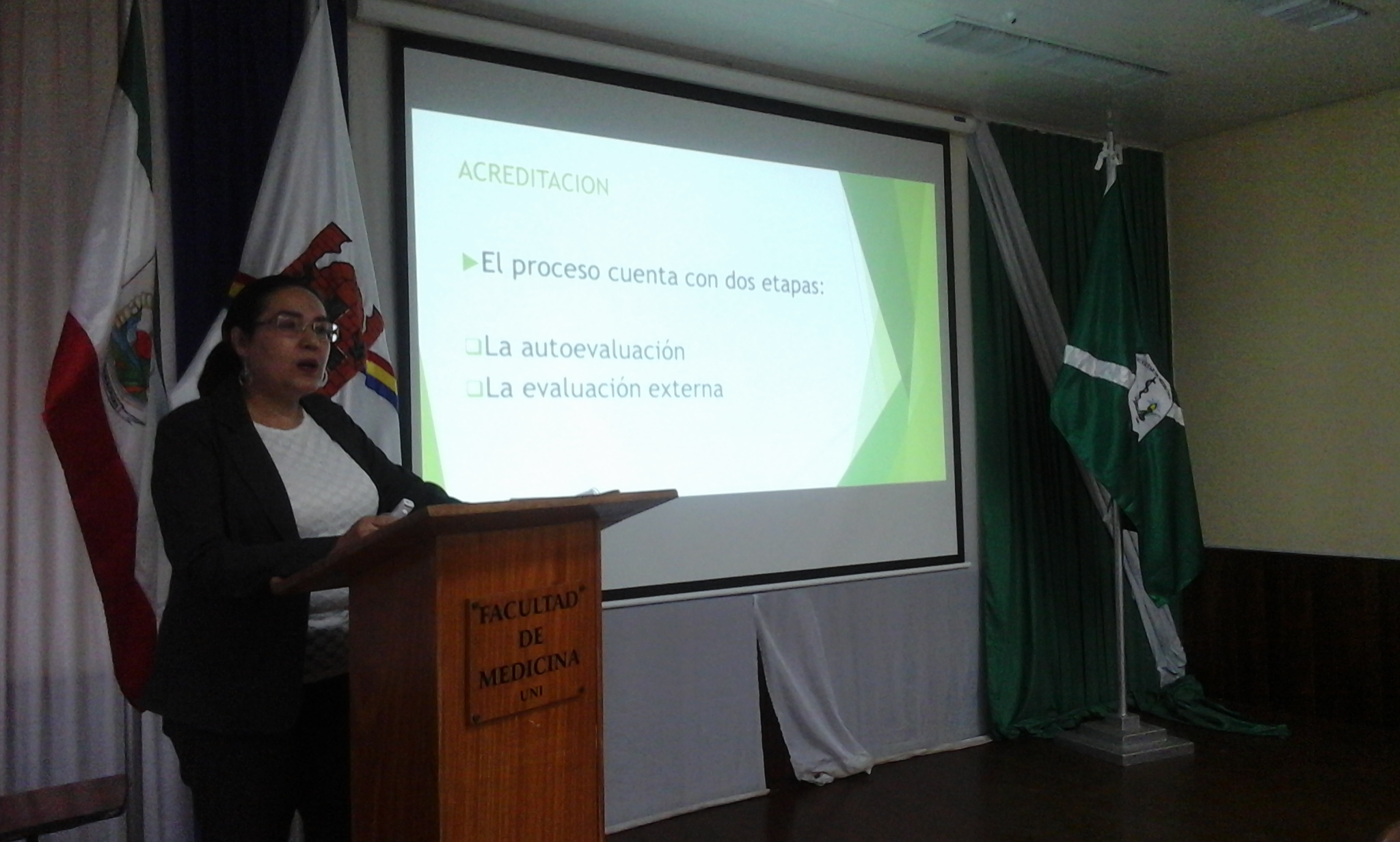 Seguidamente, Directora de Aseguramiento de la Calidad Msc. Ana Talavera, expuso sobre los aspectos a tener en cuenta ante la postulación de esta unidad académica con miras a la re acreditación de la carrera.
