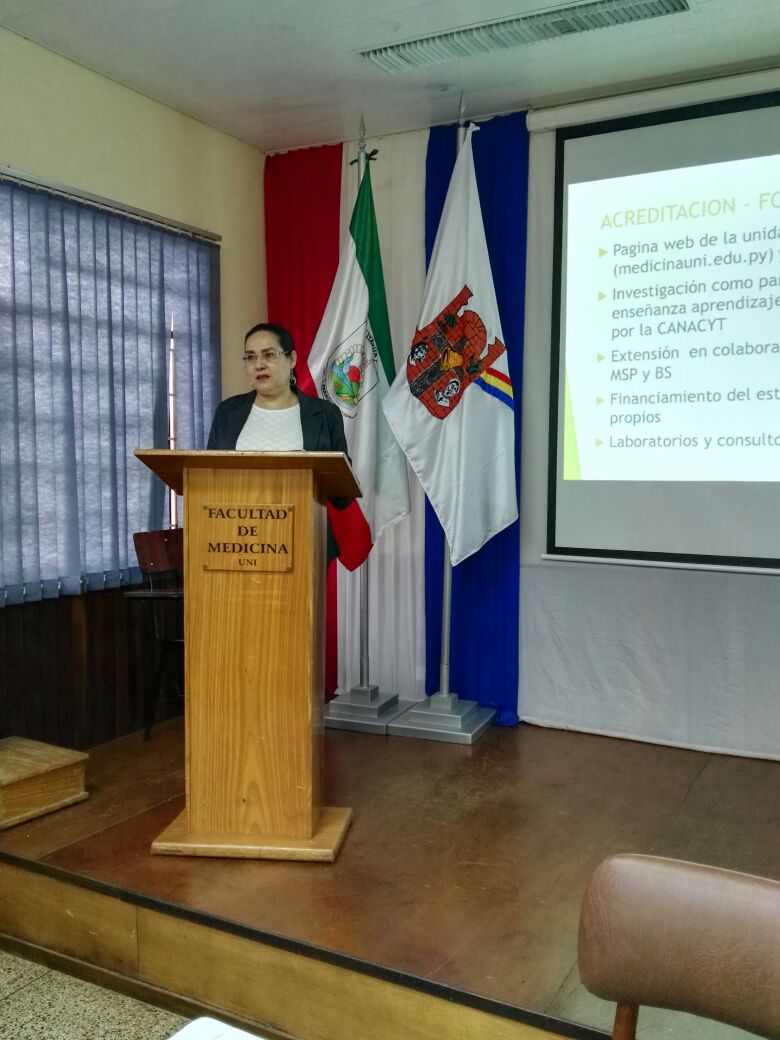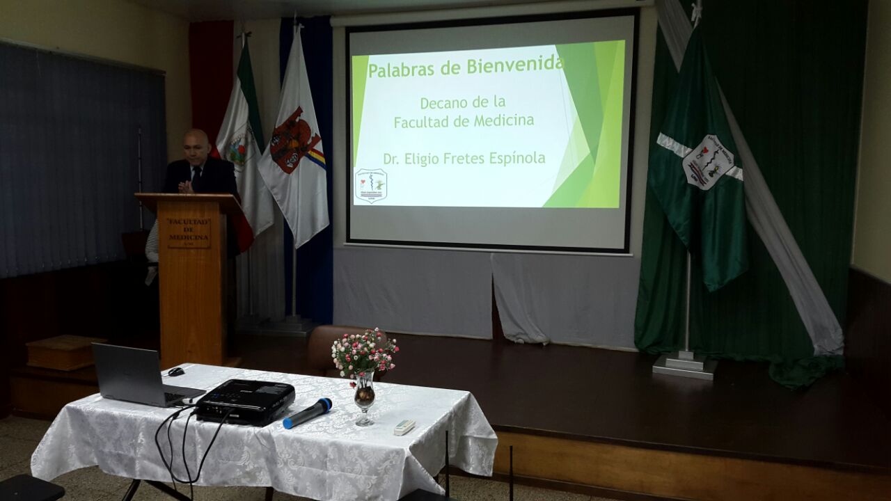 Dentro del programa del mismo, el Sr. Decano Dr. Eligio Fretes, dio el saludo de bienvenida a los asistentes, presentó un resumen administrativo de su gestión durante el último año lectivo y anunció, además, la próxima visita de pares evaluadores a la institución.