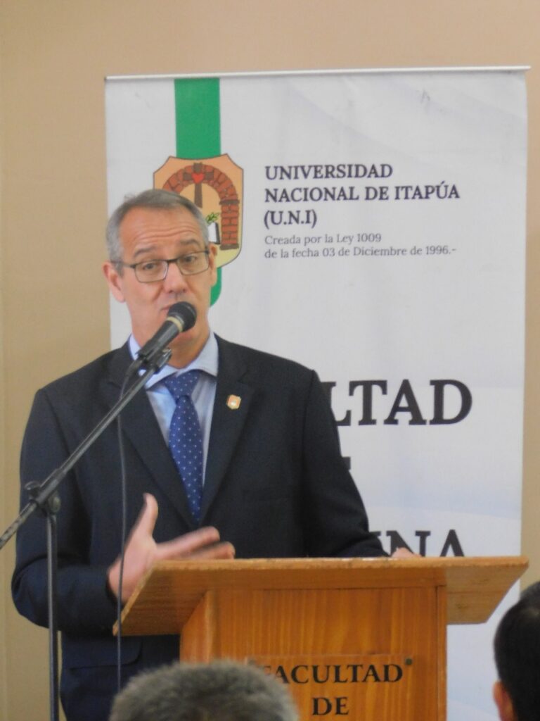 En la mañana de hoy, a las 8:00 horas, se llevó a cabo el Claustro Docente de la Facultad de Medicina de la Universidad Nacional de Itapúa (UNI), en el salón auditorio de la unidad académica. El encuentro fue presidido por el Decano, Dr. Claudio Díaz de Vivar, quien dio la bienvenida a docentes y directivos presentes, destacando la importancia de estos espacios de diálogo y construcción colectiva.