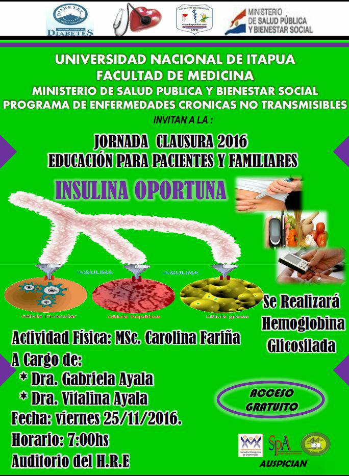 25/11/2016: Jornada de Educación y detección y Taller sobre Insulinas, dirigida a pacientes con diabetes desde las 07:00 en el HRE.