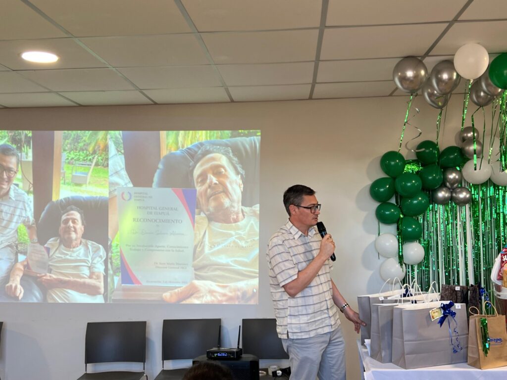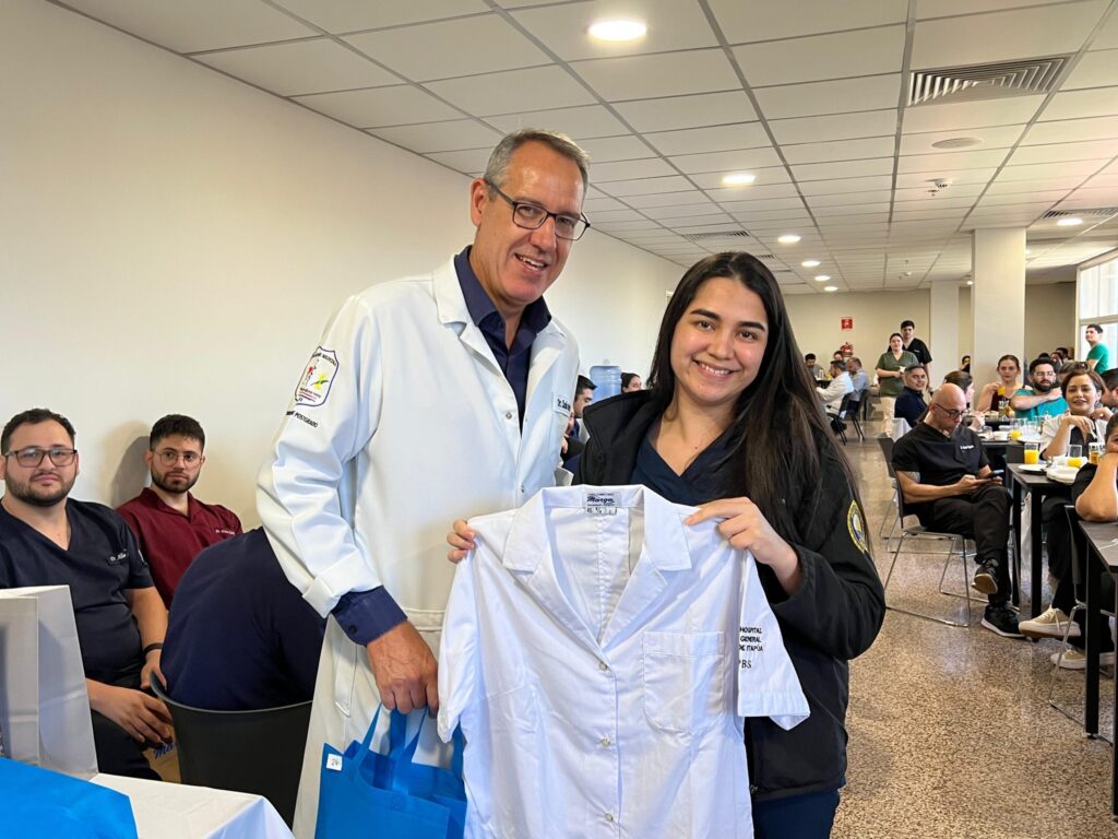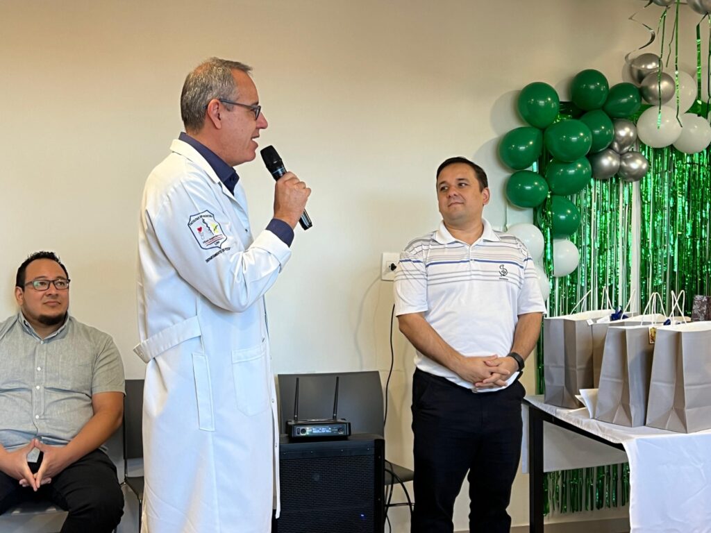 En el transcurso del evento se anunció el reconocimiento al Dr. Eliezer Silvero, ginecoobstetra de amplia trayectoria en la salud regional. A través de la proyección de imágenes se presentó la visita realizada previamente por el Dr. Juan María Martínez, director del Hospital General de Itapúa, quien hizo entrega del reconocimiento en nombre de toda la comunidad hospitalaria.