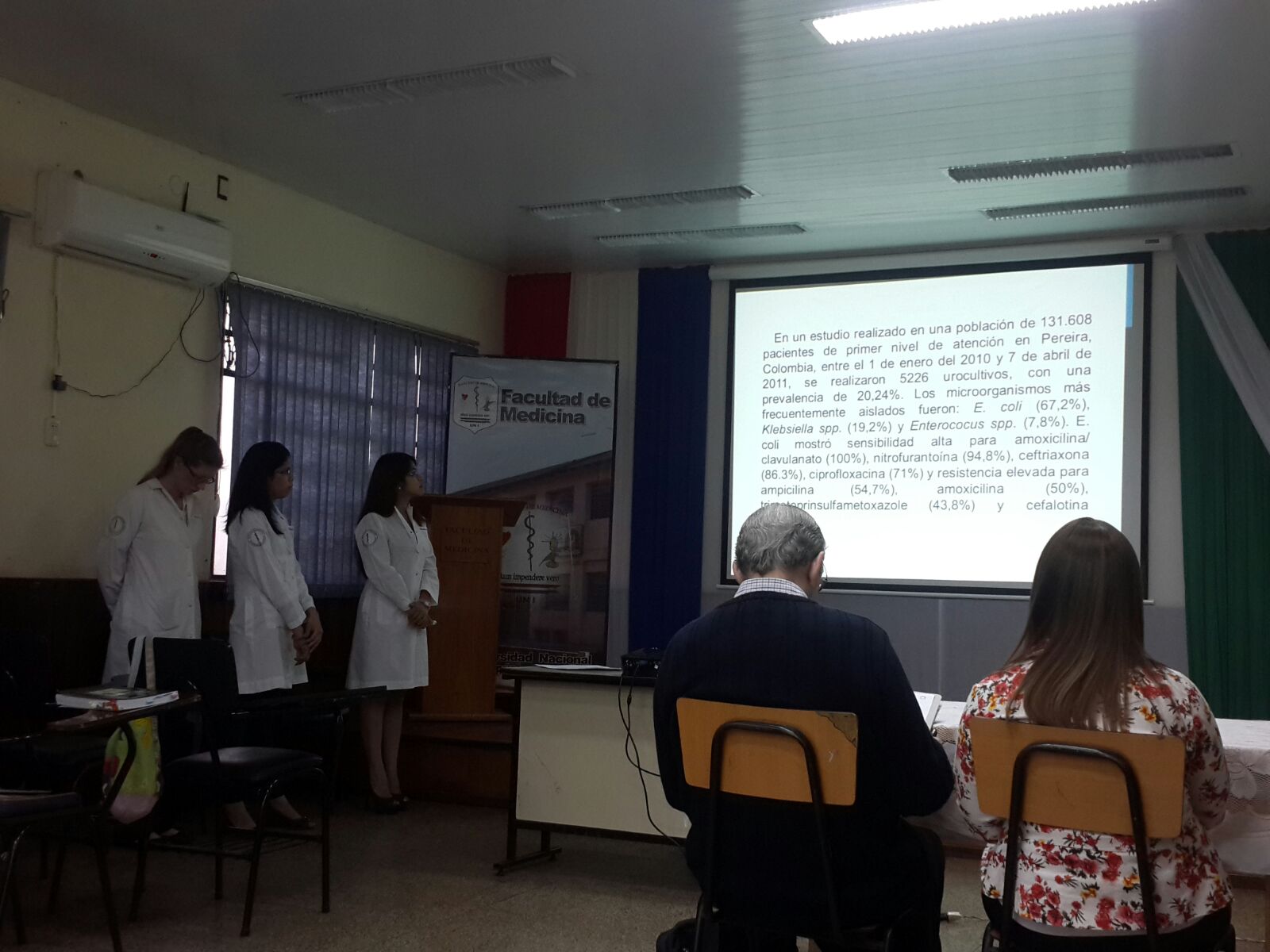 - Infecciones urinaria y la susceptibilidad antibiótica en pacientes sondados y no sondados del Servicio de Clínica Médica del HRE durante los meses de junio a agosto del año 2015. Autores: Amy Alvarenga, Larissa Avalos, María Blattmann, Natalia Casco, Soledad Cristaldo, Gabriela Espínola.
