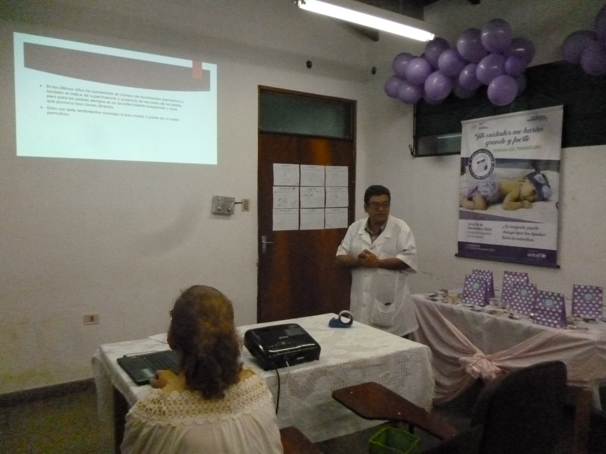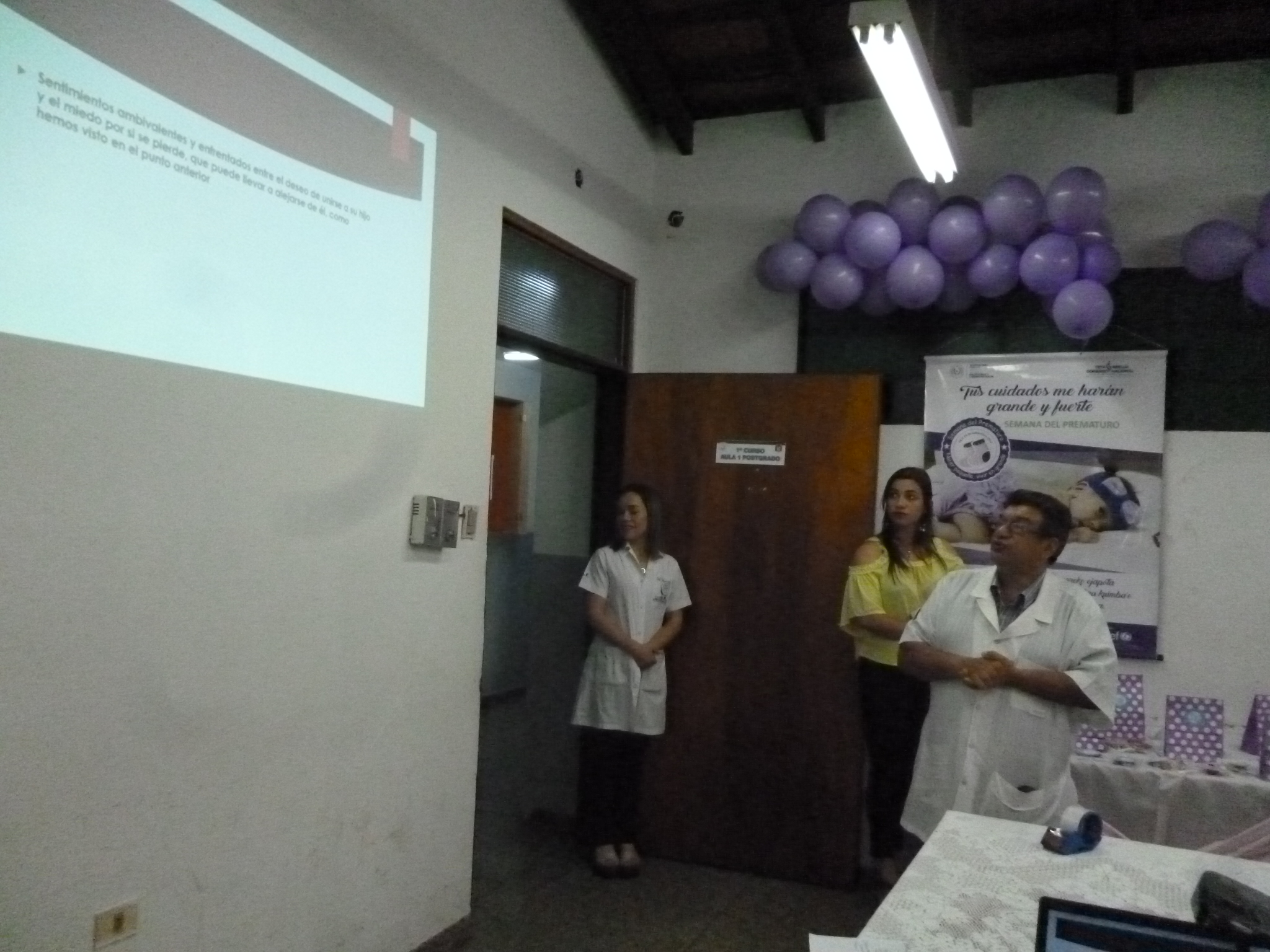 El Jefe del Servicio de Neonatología Dr. Omar Galeano, dio apertura al evento y posteriormente se dirigió al auditorio explicando sobre lo que es un prematuro y las principales dudas y miedos que enfrenta la madre de un niño que nace antes de las 37 semanas completas de gestación.