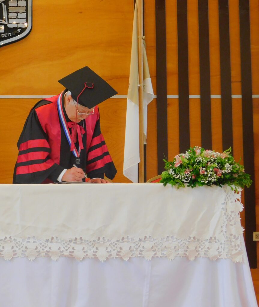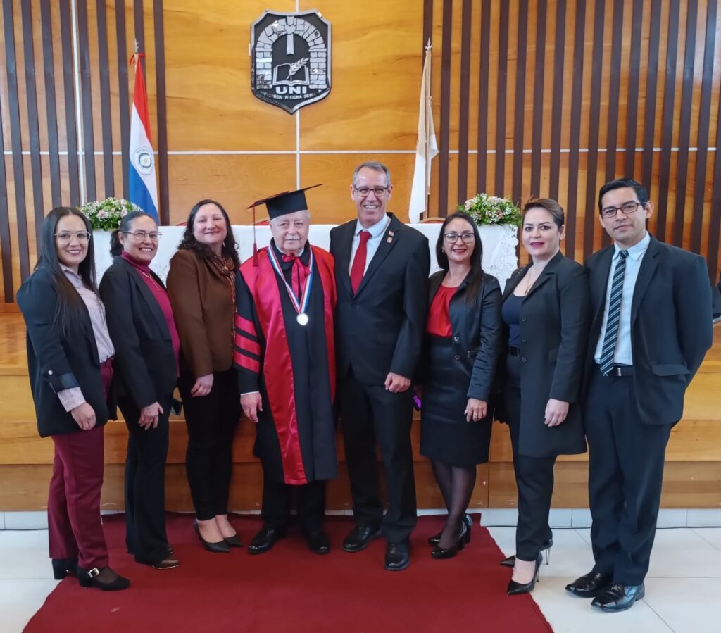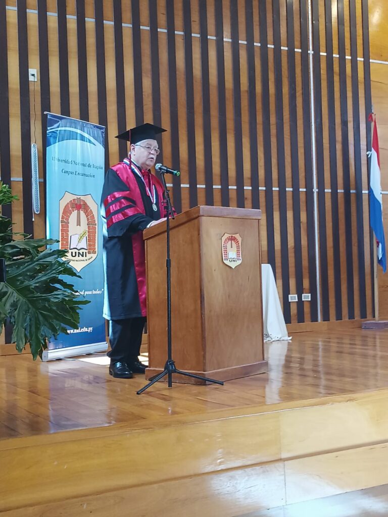 En la mañana de hoy, en el Auditorio Central de la Universidad Nacional de Itapúa a las 10:00 h, se llevó a cabo el acto de Investidura con el Título de Doctor Honoris Causa por la Universidad Nacional de Itapúa al Prof. Ing. Hildegardo González Irala, Past Rector de la UNI. En representación de la Facultad de Medicina, asistieron el Decano, Dr. Claudio Diaz de Vivar, directivos, docentes, funcionarios y estudiantes de esta unidad académica.