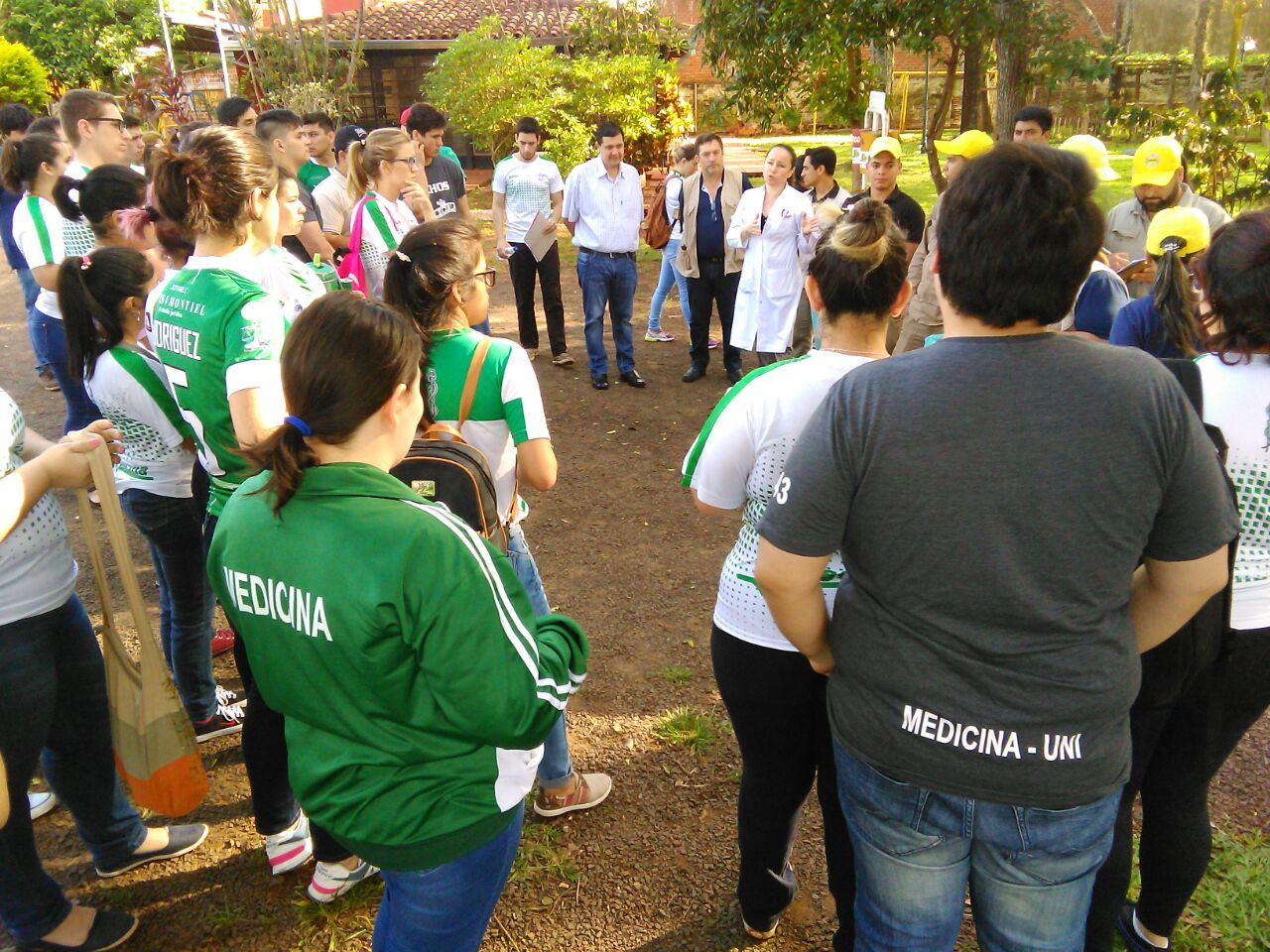 El en marco de las tareas de prevención contra el Dengue, Zika y Chikungunya, que la Facultad de Medicina de la Universidad Nacional de Itapúa, viene realizando año a año con diferentes instituciones de nuestra comunidad, estudiantes del primero y segundo curso, acompañados por la Encargada de Bienestar Estudiantil Lic. Syntia Ocampos, se hicieron presentes desde tempranas horas en el barrio María Auxiliadora de Encarnación, para trabajar en la minga ambiental llevada a cabo hoy.