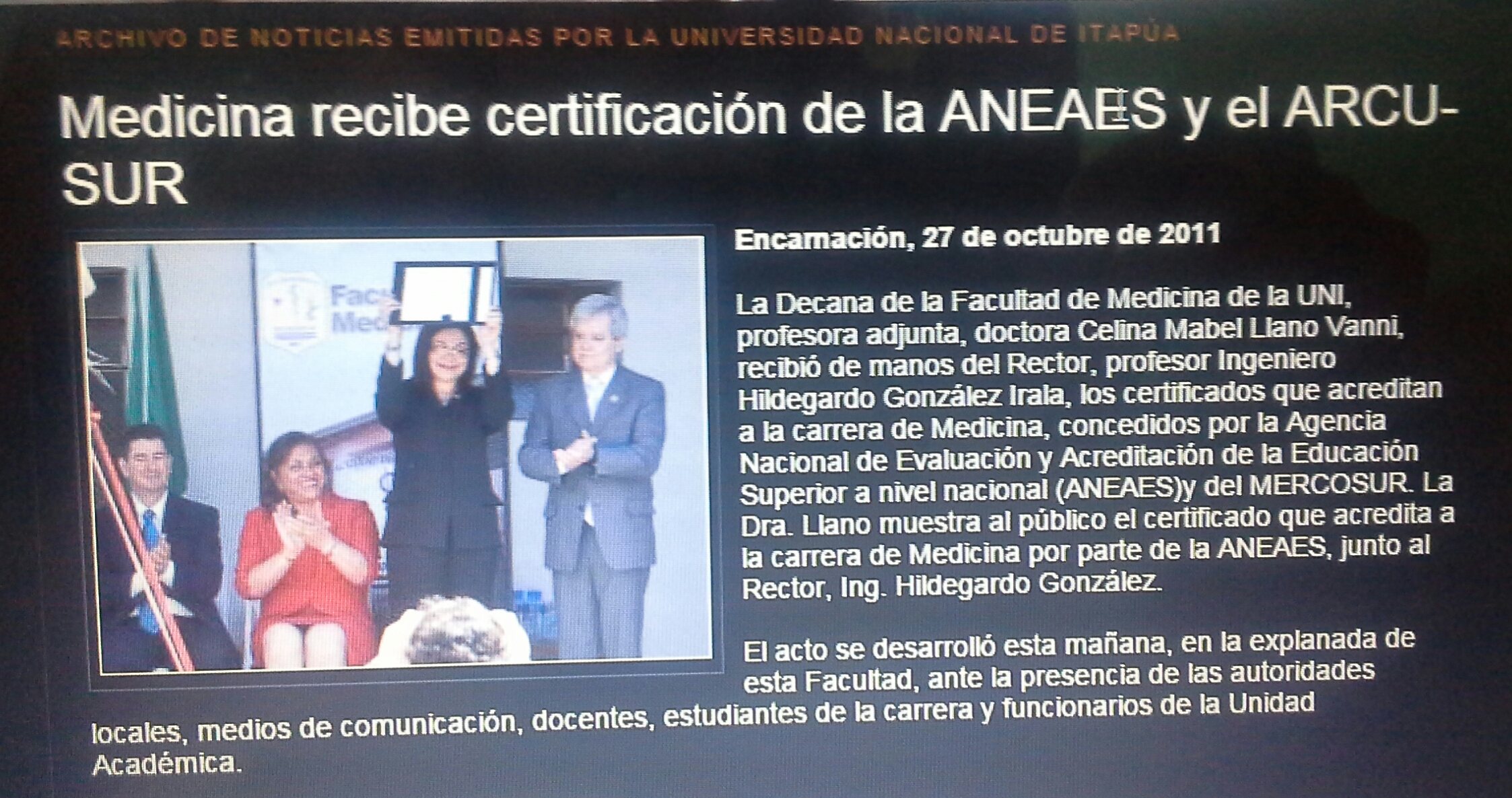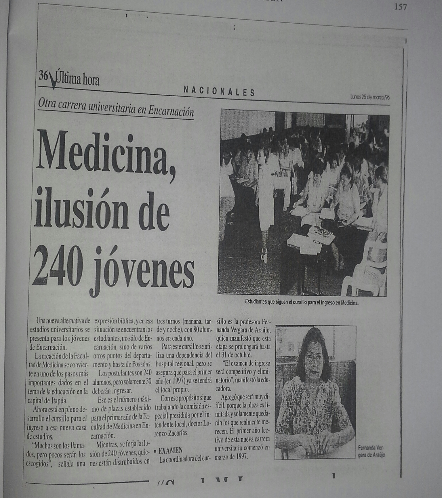 “La creación de la Facultad de Medicina se convierte en uno de los pasos más importantes dados en el tema de la educación en la capital de Itapúa” destacaba el Diario Ultima Hora en su edición del lunes 25 de marzo de 1996.