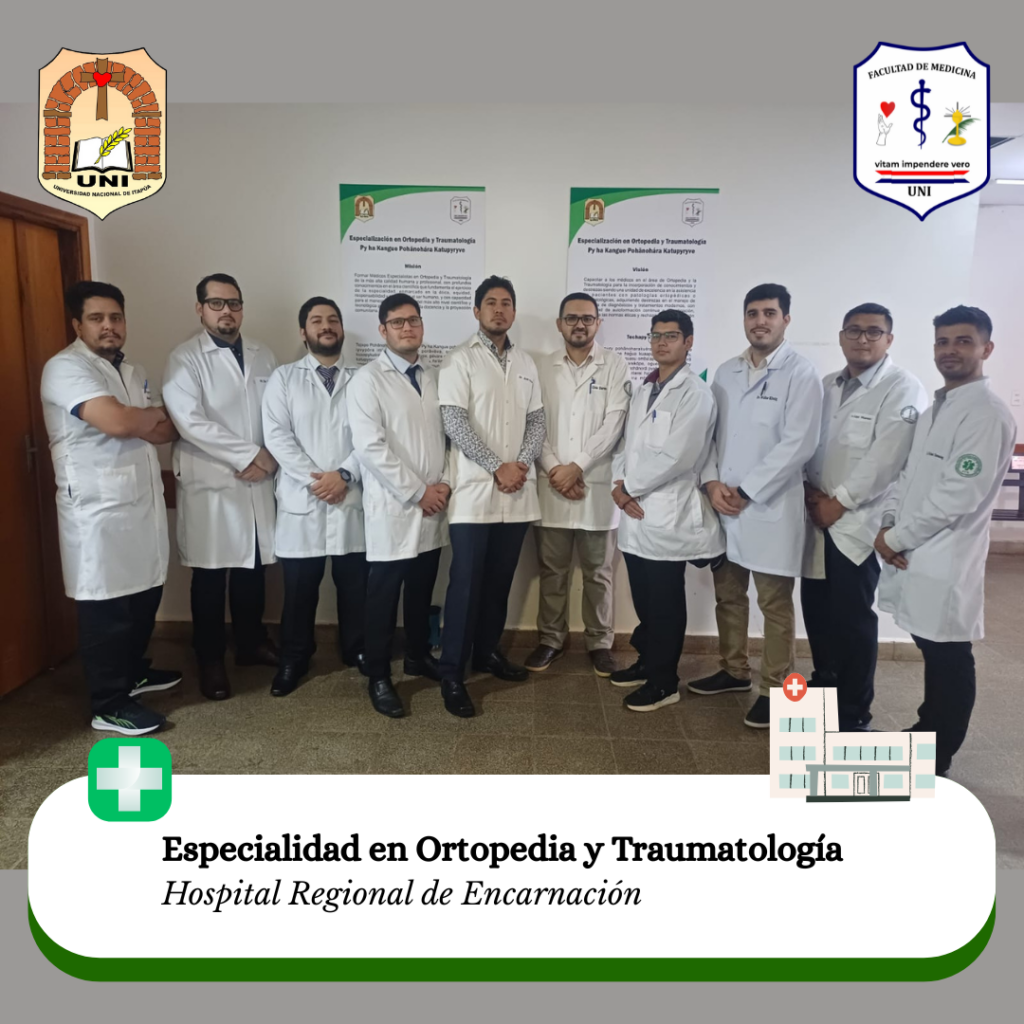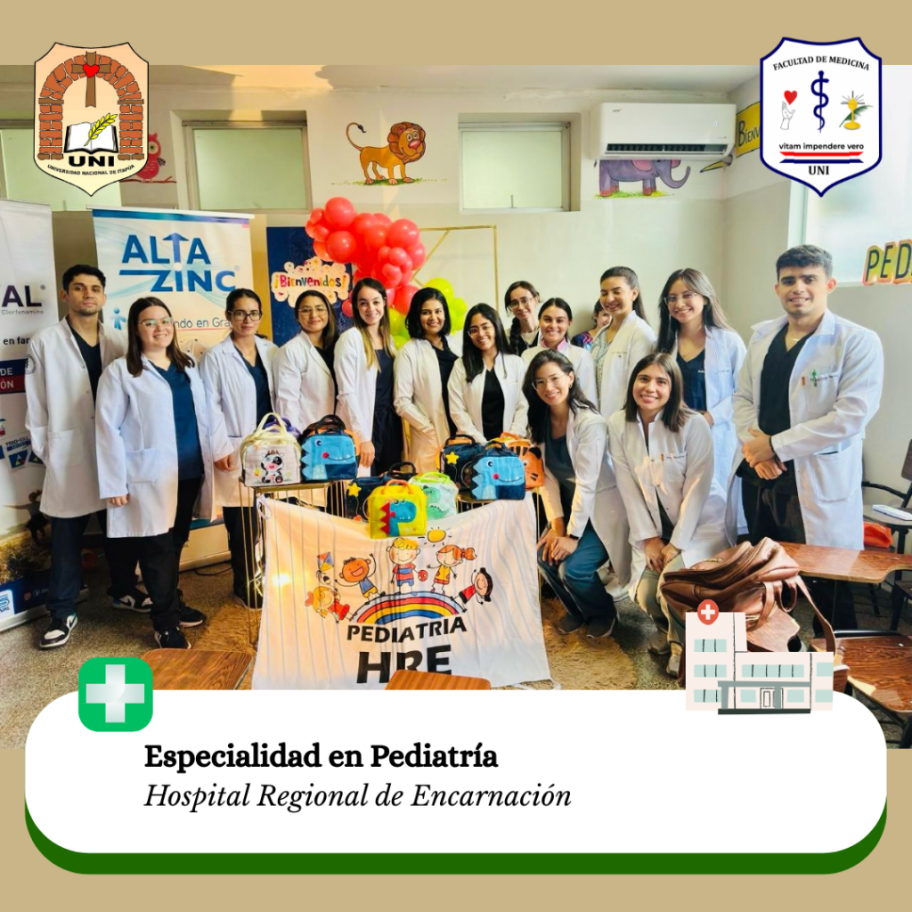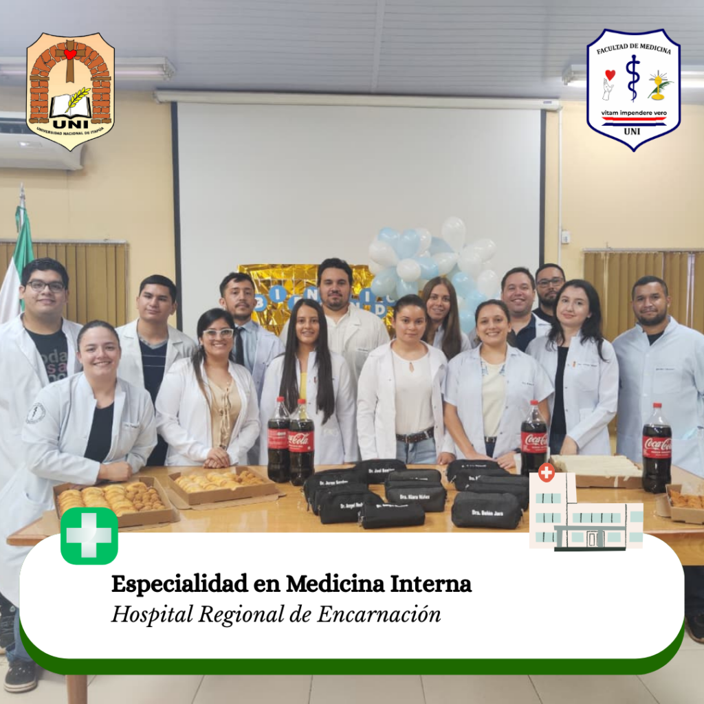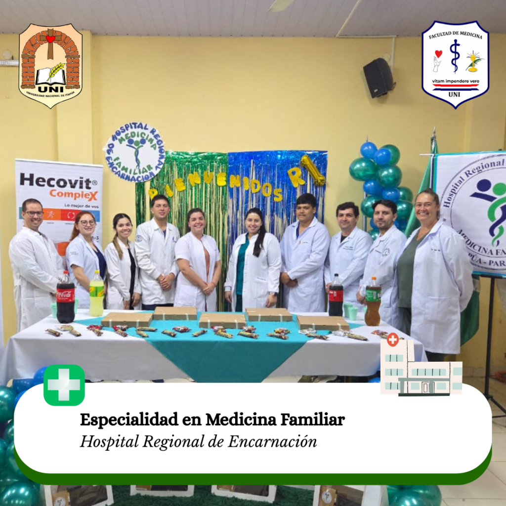 Este martes 2 de abril de 2025, los residentes de las especializaciones en Cirugía, Pediatría, Medicina Familiar, Medicina Interna, Ortopedia y Traumatología, Anestesia, Analgesia y Reanimación, y Ginecoobstetricia de la Facultad de Medicina de la Universidad Nacional de Itapúa han comenzado un nuevo ciclo en su formación en el Hospital Regional de Encarnación, el Hospital Nacional de Itauguá y el Hospital San Jorge.