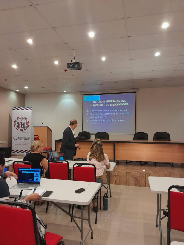 El sábado 6 de abril del presente año, se dio inicio al Diplomado en Metodología de la Investigación y Bioestadística. Este fue organizado por la Sociedad Paraguaya de Medicina Interna, con el auspicio de la Facultad de Medicina de la Universidad Nacional de Itapúa. El mismo está dirigido a docentes y tutores de los postgrados en Medicina Interna, así como a especialistas en Medicina Interna, Medicina Familiar, Cardiología, Diabetología y áreas afines. El docente a cargo es el Mag. Prof. Dr. Raúl Emilio Real.