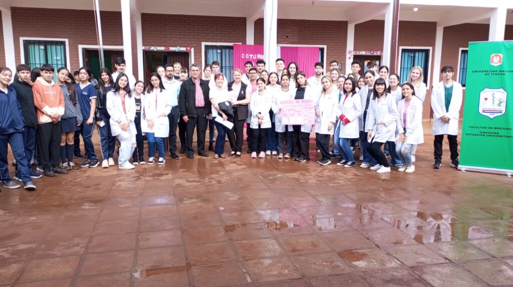 Bajo la coordinación del Departamento de Extensión Universitaria y la Cátedra de Medicina de la Comunidad de la carrera de Medicina, el día miércoles 16 de octubre del año en curso, estudiantes del primer curso de la Facultad de Medicina, llevaron a cabo una charla de prevención y detección temprana del cáncer de mama en el Colegio Nacional Nueva Esperanza del barrio Chaipé dirigida a los estudiantes del nivel medio.