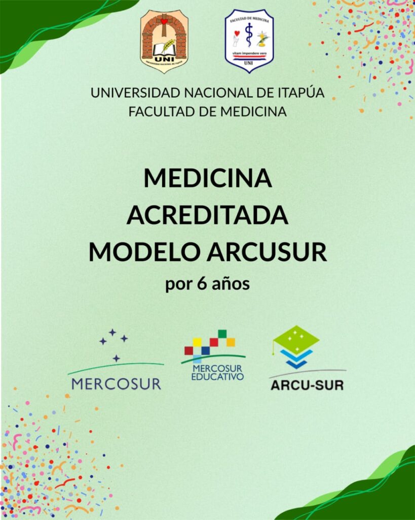 La Facultad de Medicina de la Universidad Nacional de Itapúa (UNI) se complace en informar a la comunidad académica y a la ciudadanía sobre la obtención, por tercera vez, del sello de calidad académica otorgado por el Sistema Regional ARCUSUR.