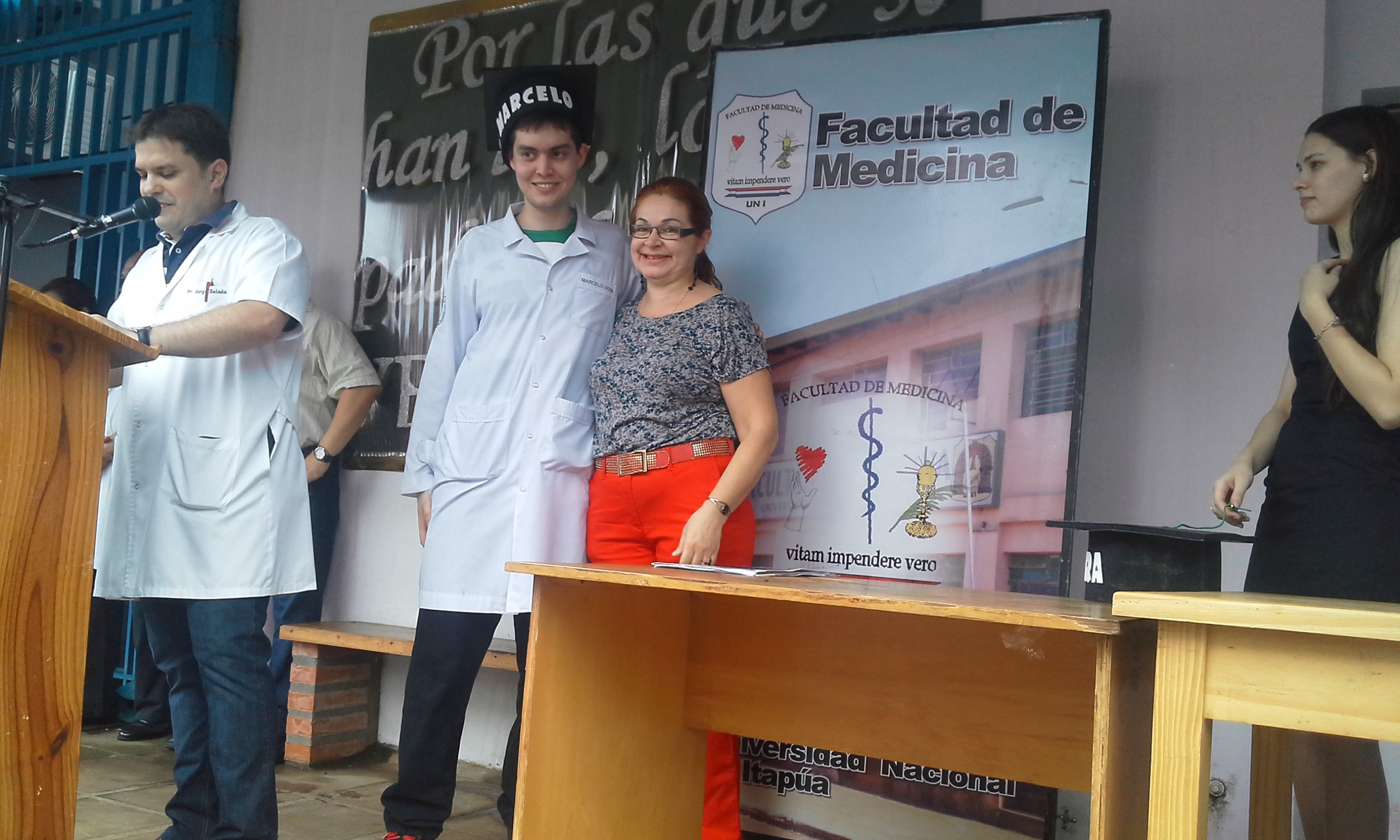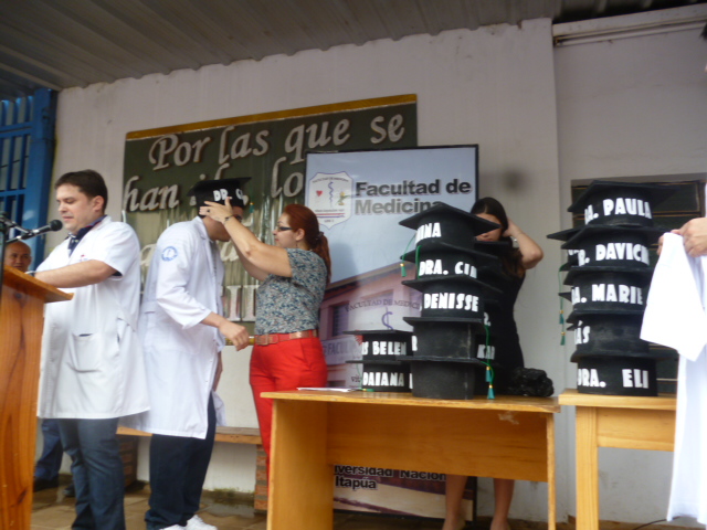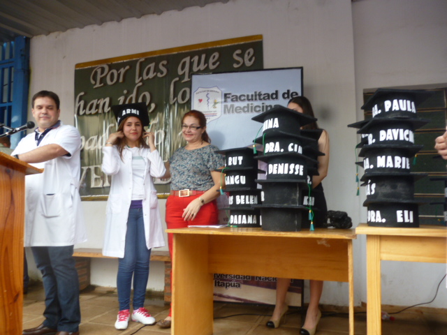 Acompañaron el evento, el Decano Dr. Eligio Fretes, la Vice Decana Dra. Liliana Centurión Preda, la Directora Académica Dra. Carolina Scott, el Director del Internado Rotatorio Dr. Raúl Viré, funcionarios, alumnos y familiares de los egresados.