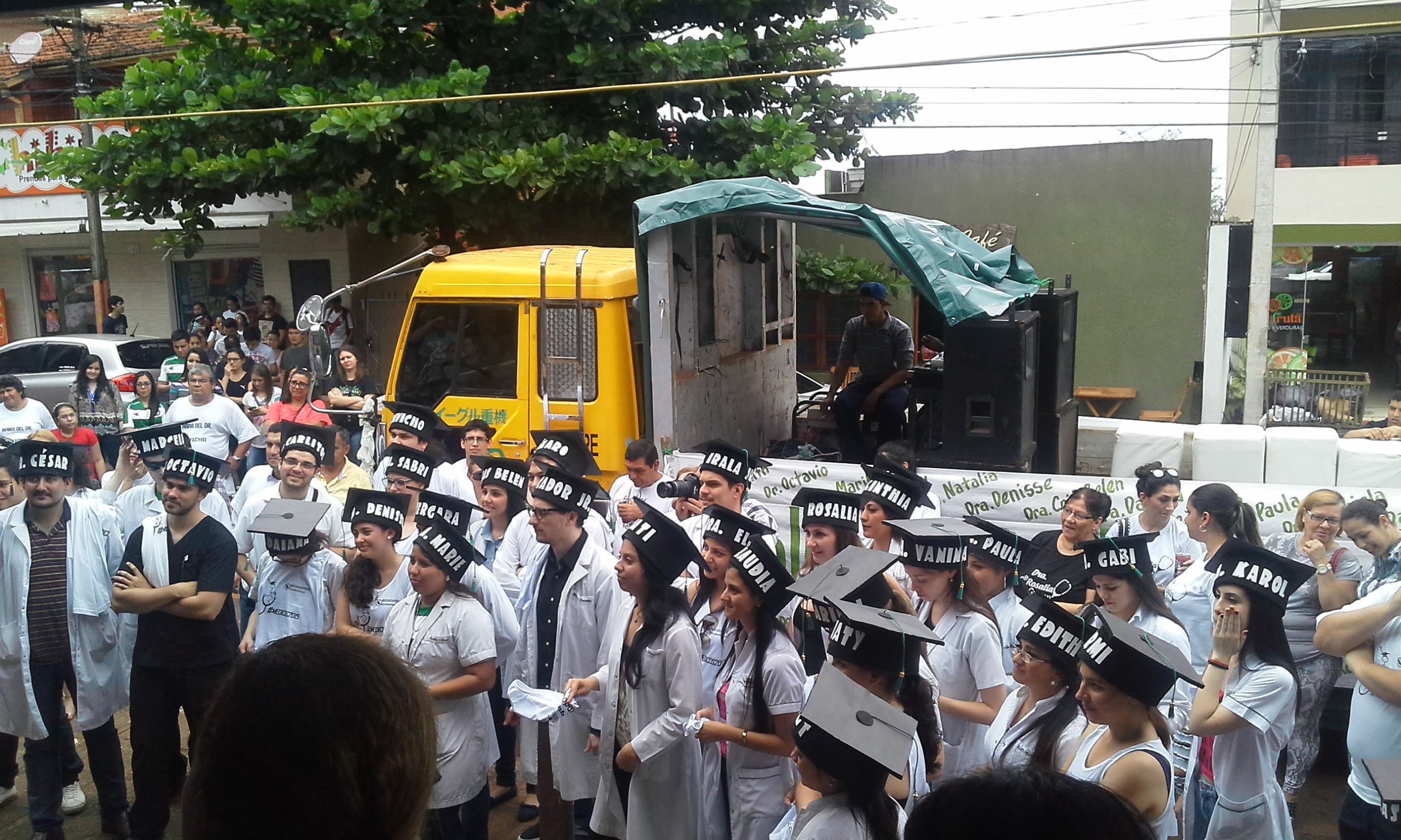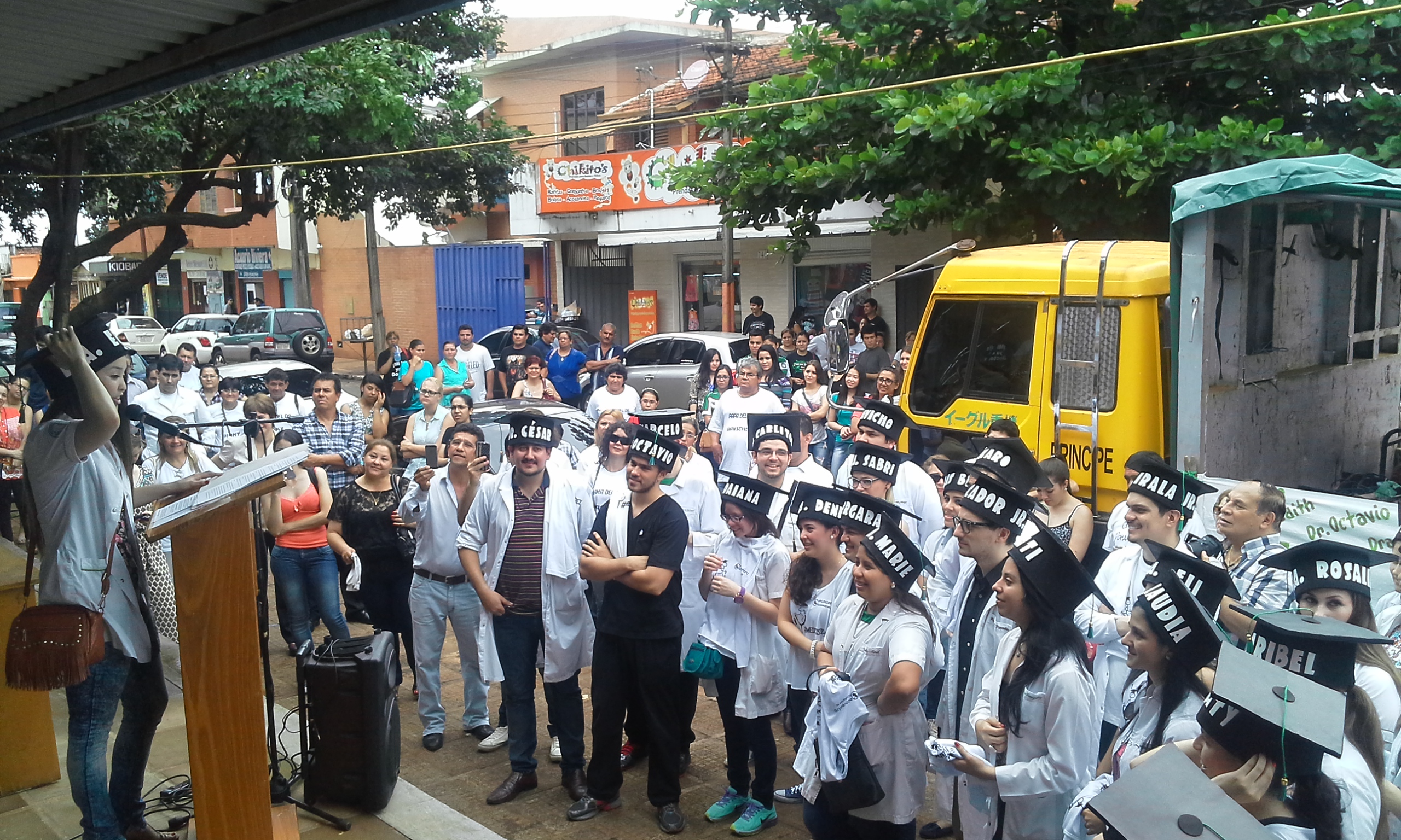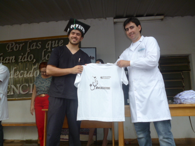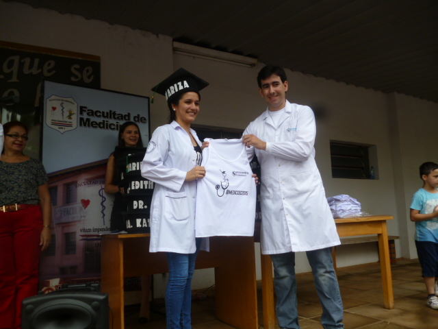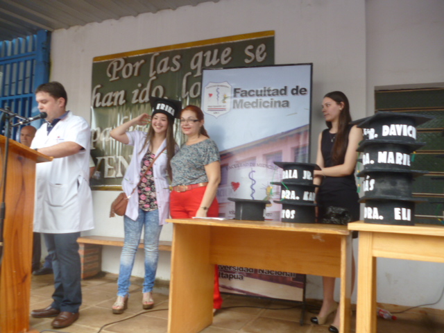 En medio de una gran algarabía, en la mañana de hoy, se realizó frente a la Institución el tradicional llamado de lista de los más de treinta nuevos Médicos Cirujanos de la Facultad de Medicina de la Universidad Nacional de Itapúa, Promoción 2015.