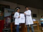 Posteriormente el Dr. Zelada, llamó la lista de los que han aprobado académicamente la carrera, mientras la Dra. Llano colocó a cada joven el ingenioso birrete de graduación que fue preparado para la ocasión.