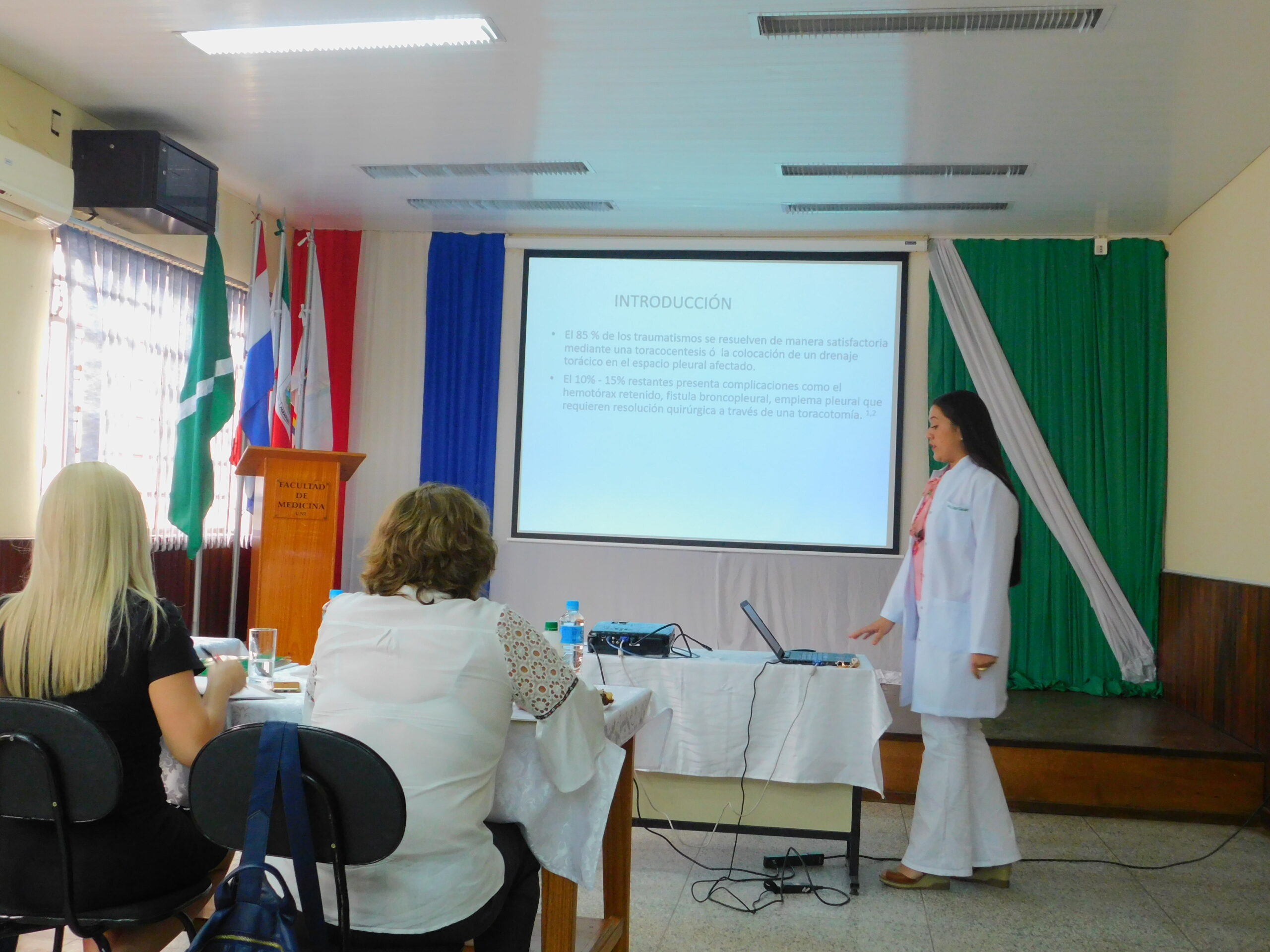 En representación de la Facultad de Medicina, asisten e integran la mesa evaluadora, la Directora General Académica Dra. Carolina Scott B, la Directora de Aseguramiento de la Calidad Msc. Ana Talavera, la Directora del Internado Rotatorio y Pasantía Supervisada Dra. Mirtha Pelozo, además de otros Médicos Especialistas. Coordina esta actividad, la Directora de Docencia, Investigación y Extensión Universitaria Bqca. Diana Dressler .