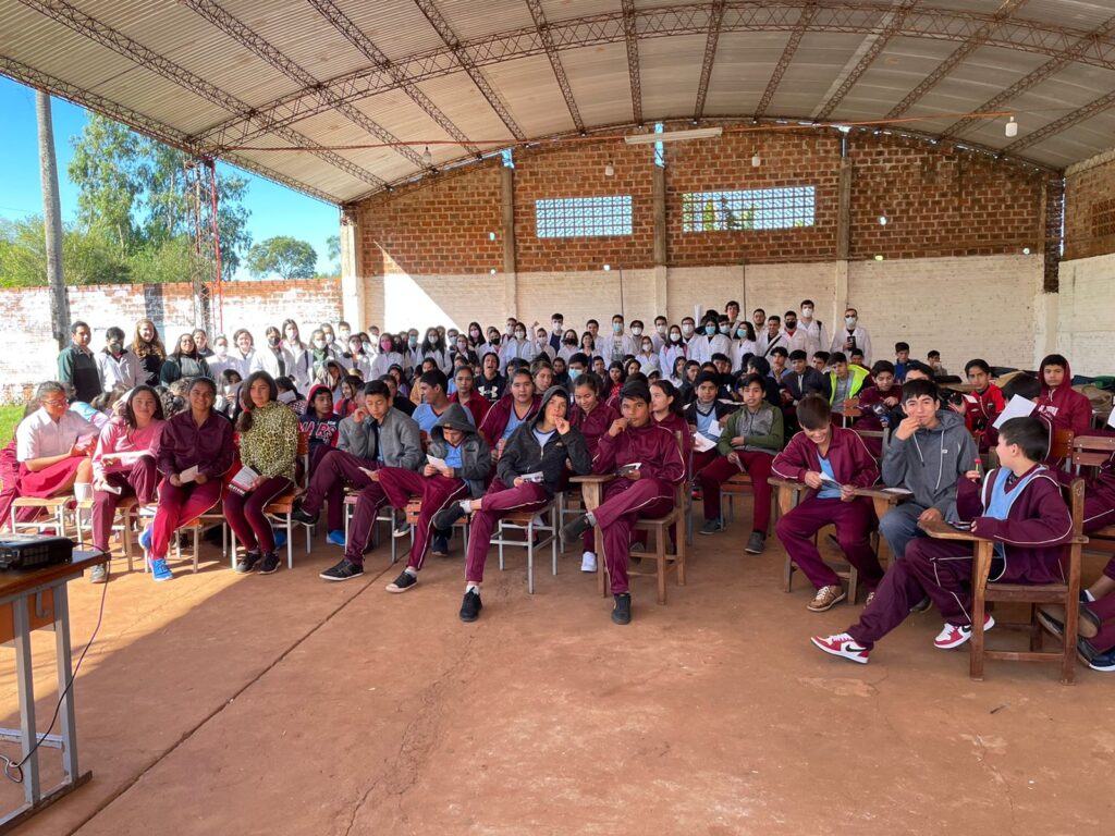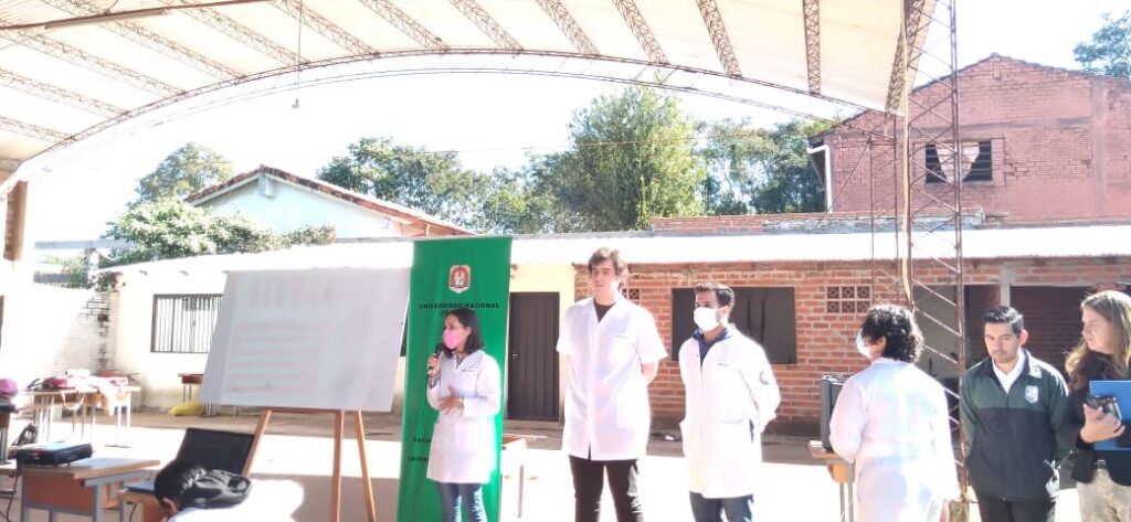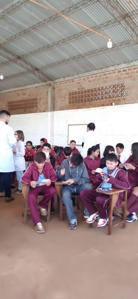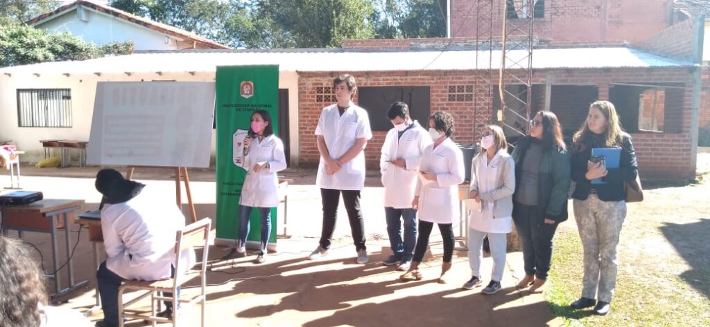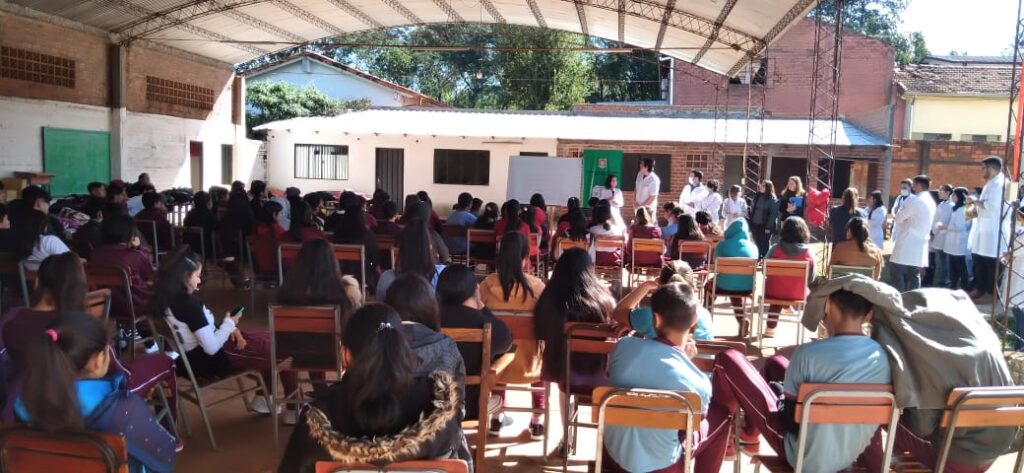 Con el objetivo de realizar una charla para ayudar a crear conciencia y corregir los conceptos erróneos sobre la tuberculosis, el pasado viernes 05 de agosto del corriente, docentes de la cátedra de Socioantropología, estudiantes del primer curso e integrantes de la Dirección de Extensión, se trasladaron a la Escuela Básica N° 1541, del barrio Chaipé de Encarnación.