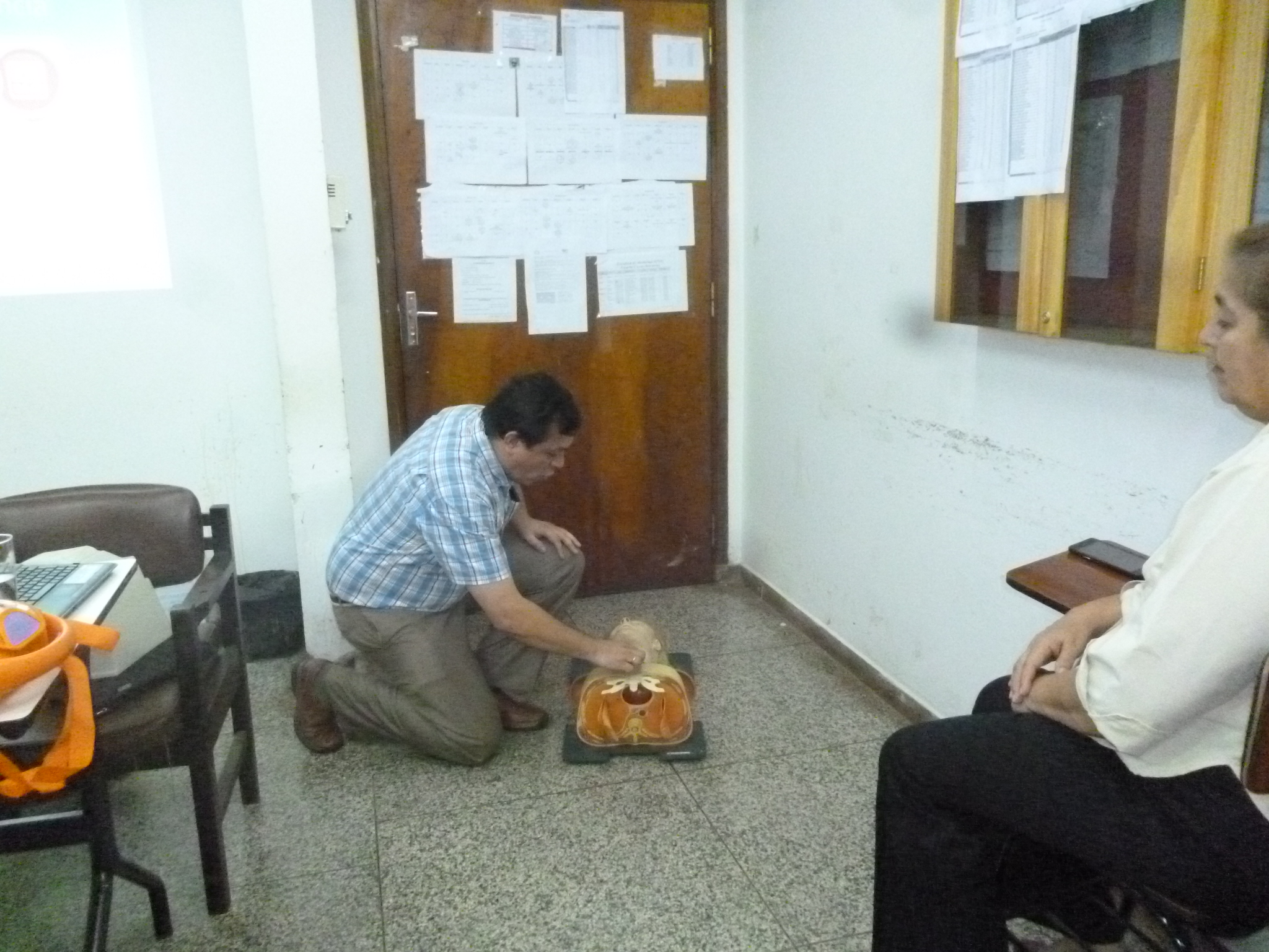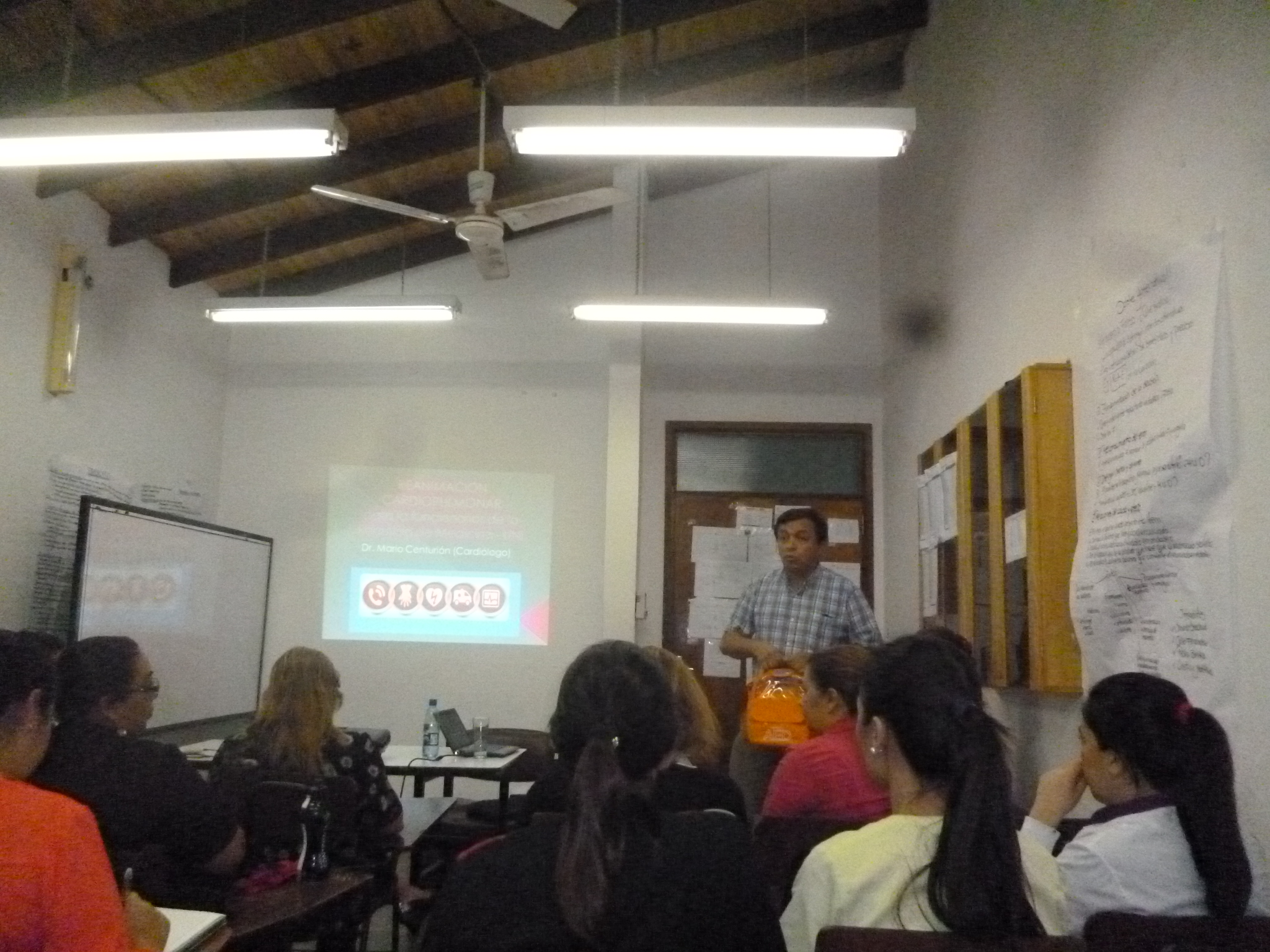 En el aula del cuarto curso de la Facultad de Medicina de la Universidad Nacional de Itapúa, a las 11:00, se llevó a acabo un taller sobre reanimación cardiopulmonar para funcionarios, dictado por el Especialista en Cardiología Dr. Mario Ramón Centurión Bobadilla.