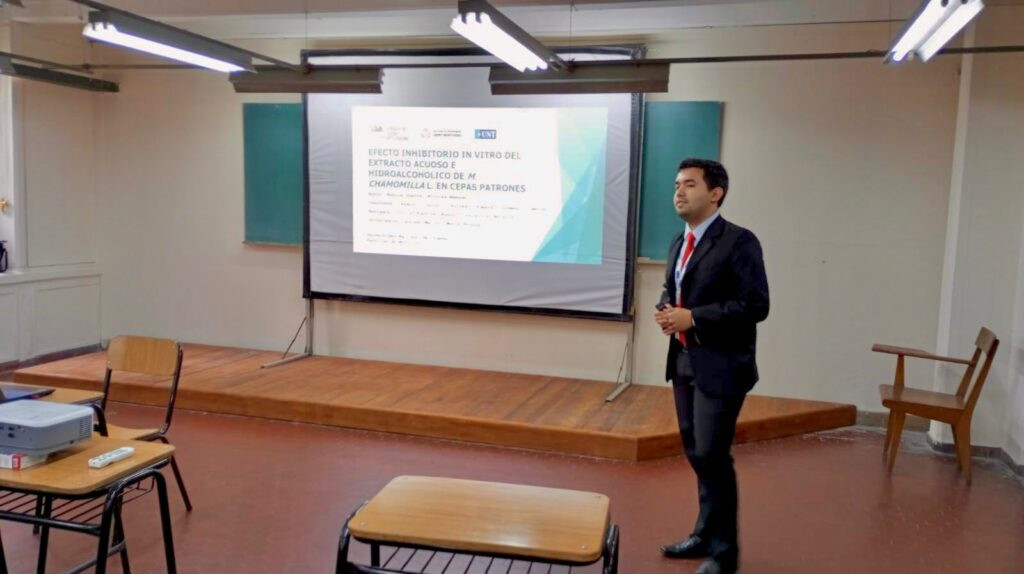Tema: Efecto inhibitorio in vitro de los extractos acuosos e hidroalcohólicos de Matricaria chamomilla L. sobre cepas patrones. - Hernán Javier Sauer Luckmann (4to curso)