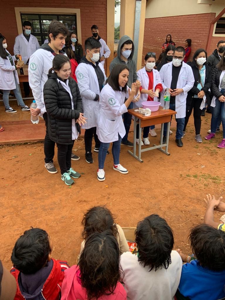 Durante la actividad que fue coordinada por el Departamento de Extensión Universitaria , conjuntamente con los estudiantes del primer y quinto curso, la Dra. María Teresa Barán, docente de tiempo completo y el Dr. Juan de la Cruz Britez, docente de la cátedra de Bioética, se realizó primeramente una visita a la Unidad de Salud Familiar local, ocasión en la que los funcionarios del lugar realizaron una inducción a los estudiantes, referente a los protocolos y procedimiento de atención a los integrantes de la comunidad indígena.