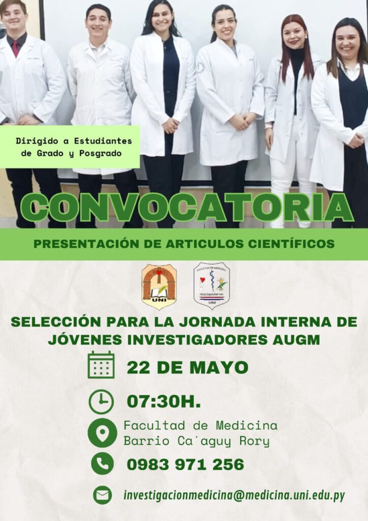 Hasta el día lunes 13 de mayo, a las 15:00 h al correo de investigacionmedicina@medicina.uni.edu.py