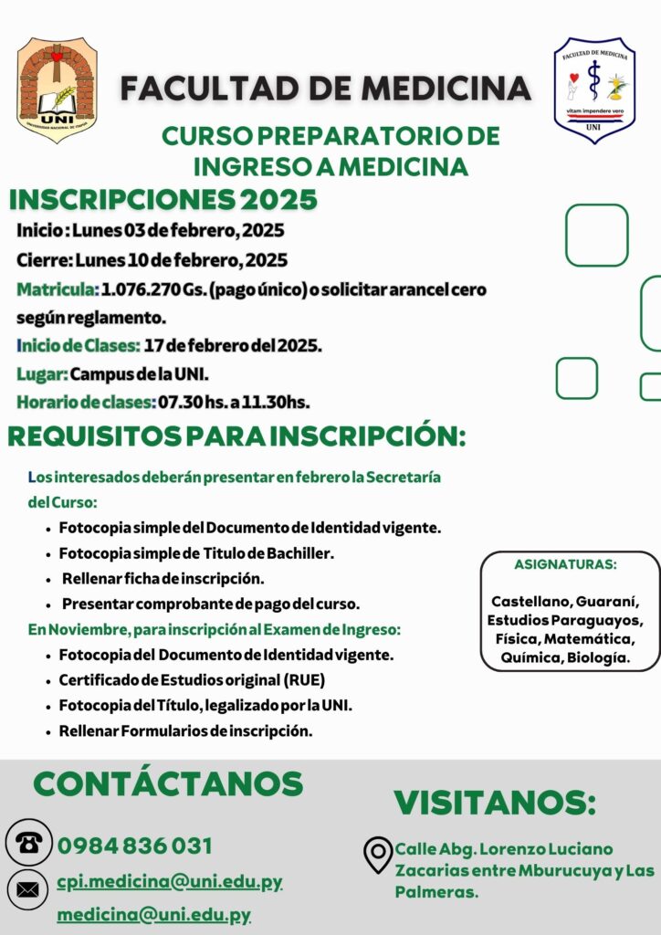 Desde la fecha 3 hasta el 10 de febrero se da inicio a la inscripción del Curso Preparatorio de Ingreso del periodo 2025, de forma Presencial, de 07:00 a 11:30 hs. en Sede Campus.