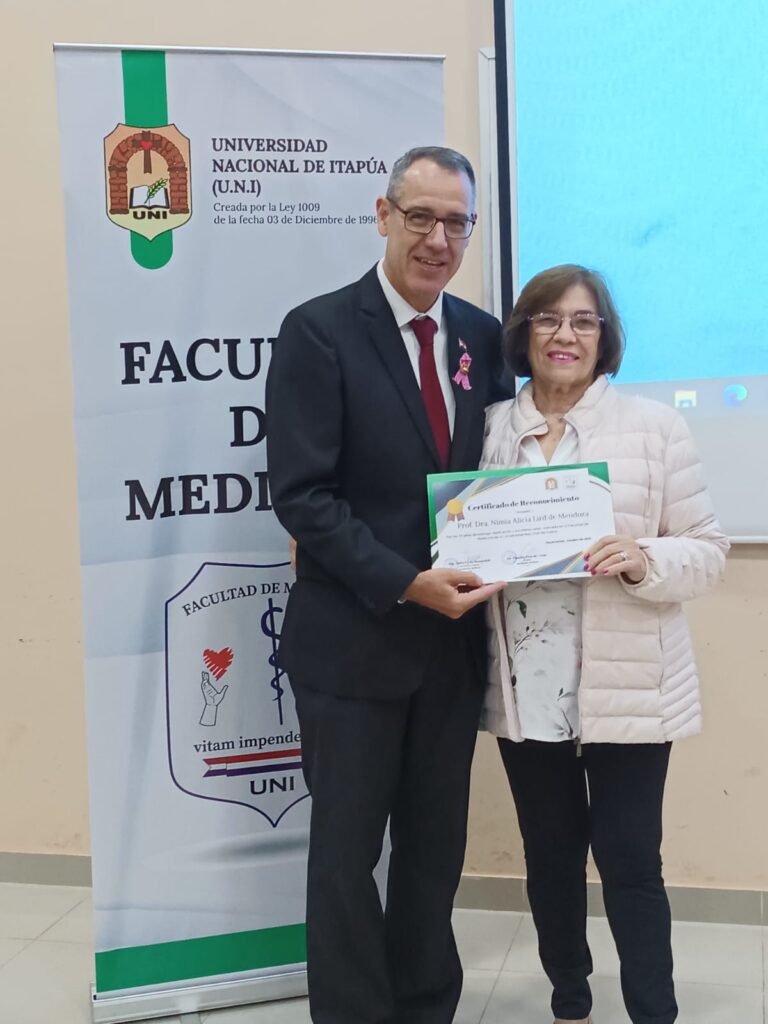 Desde 1998 de manera ininterrumpida, la Prof. Titular. Dra. Nimia Alicia Lird deMendoza, ha desarrollado clases en la Cátedra de Bioquímica de la Facultad de Medicina de la Universidad Nacional de Itapúa. Quien se iniciara en marzo de ese año, como Profesora Encargada, en la fecha, dictó la última en nuestra institución, cerrando de esta manera un ciclo importante de su trayectoria académica y profesional, para acogerse a los beneficios de la jubilación.