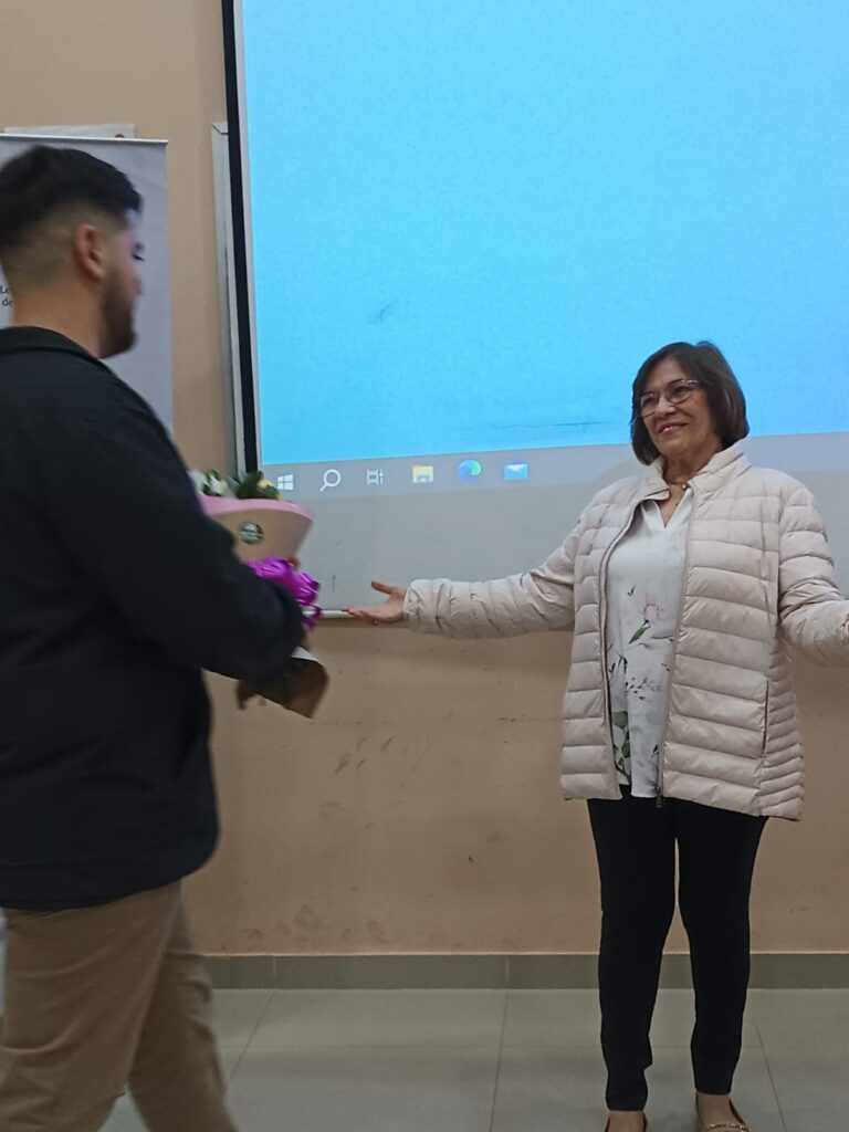 La sala del segundo curso, fue el lugar elegido, para que una vez finalizada la última lección impartida por la catedrática a sus estudiantes, los mismos, junto a directivos, docentes y funcionarios administrativos, realicen un emotivo acto de reconocimiento y gratitud a su proficua labor.